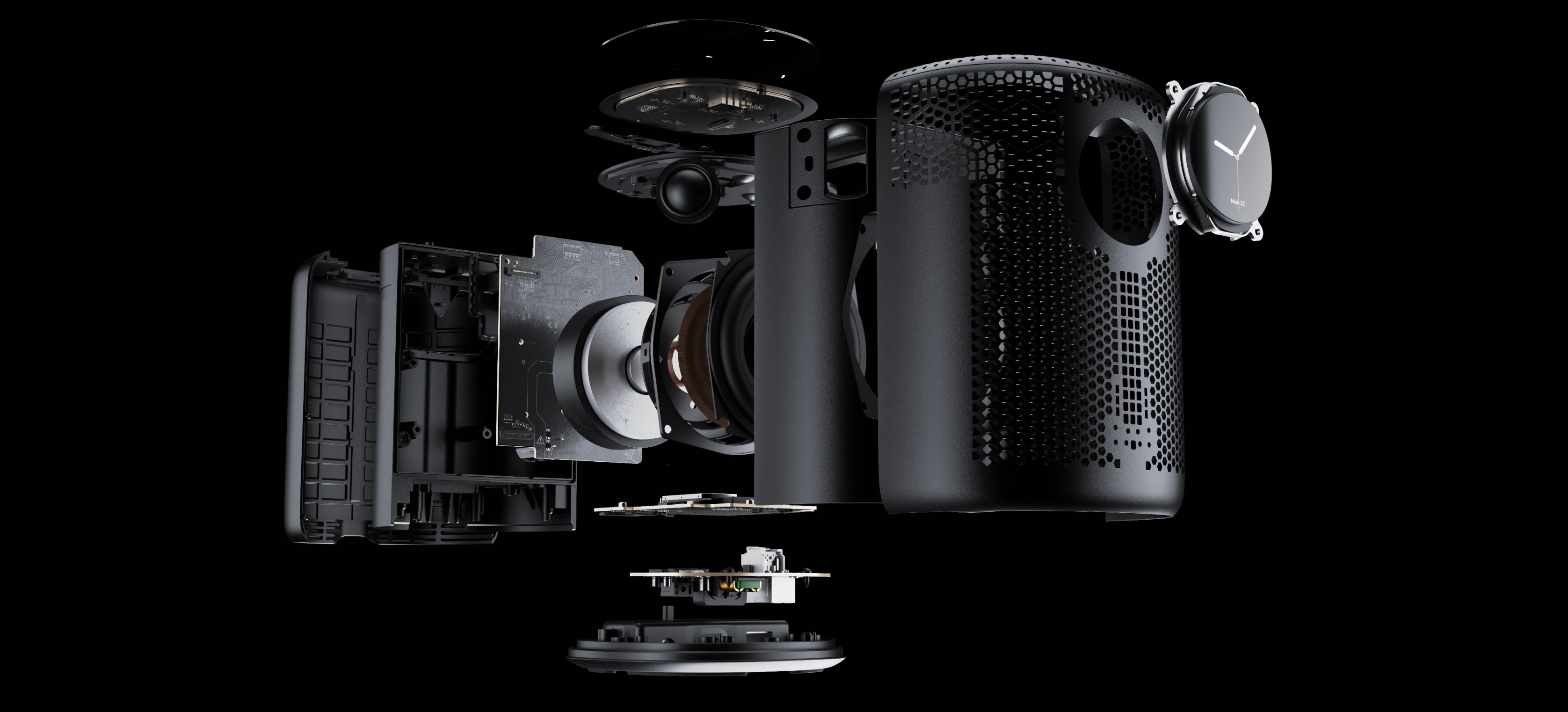 - Ovládání přímo na zařízení - 1,8" kruhový dotykový displej zobrazuje obal alba, čas, informace o skladbě, zdroj, skupiny, EQ i stav RoomFit — bez telefonu.