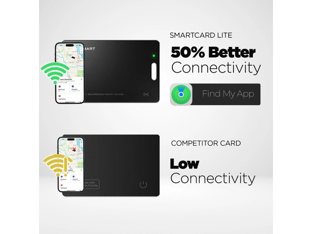 Kompatibilní s Apple Find My – jednoduše přidej SmartCard Lite do aplikace Find My na svém Apple zařízení. Dokážeš ho vypátrat pomocí Bluetooth zvukových signálů nebo lokalizováním přes rozsáhlou síť Apple zařízení.