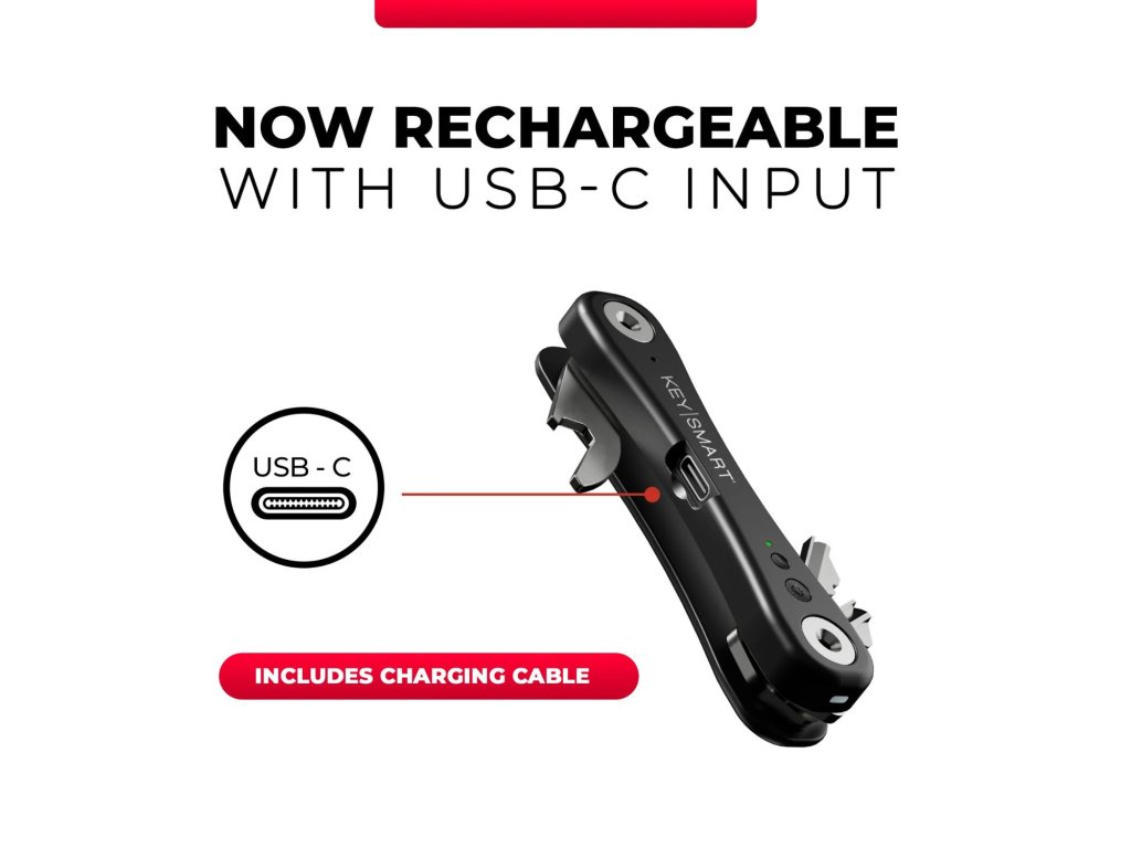 Elegantní a odolný organizér až pro 14 klíčů s lokalizací od Apple. Tělo organizéru je vyrobeno z pevného plastu a je dostupné hned v několika barvách. Lokalizační čip je vestavěn v konstrukci a lze ho nabíjet dodávaným USB-C kabelem. Mobilním telefonem lze prozvonit KeySmart, lze rovněž nastavit i notifikace (všechny funkce jsou závislé na softwaru Apple). Organizér též disponuje malou svítilnou, která ulehčí otvírání dveří za tmy. Součástí balení je i otvírák na láhve.