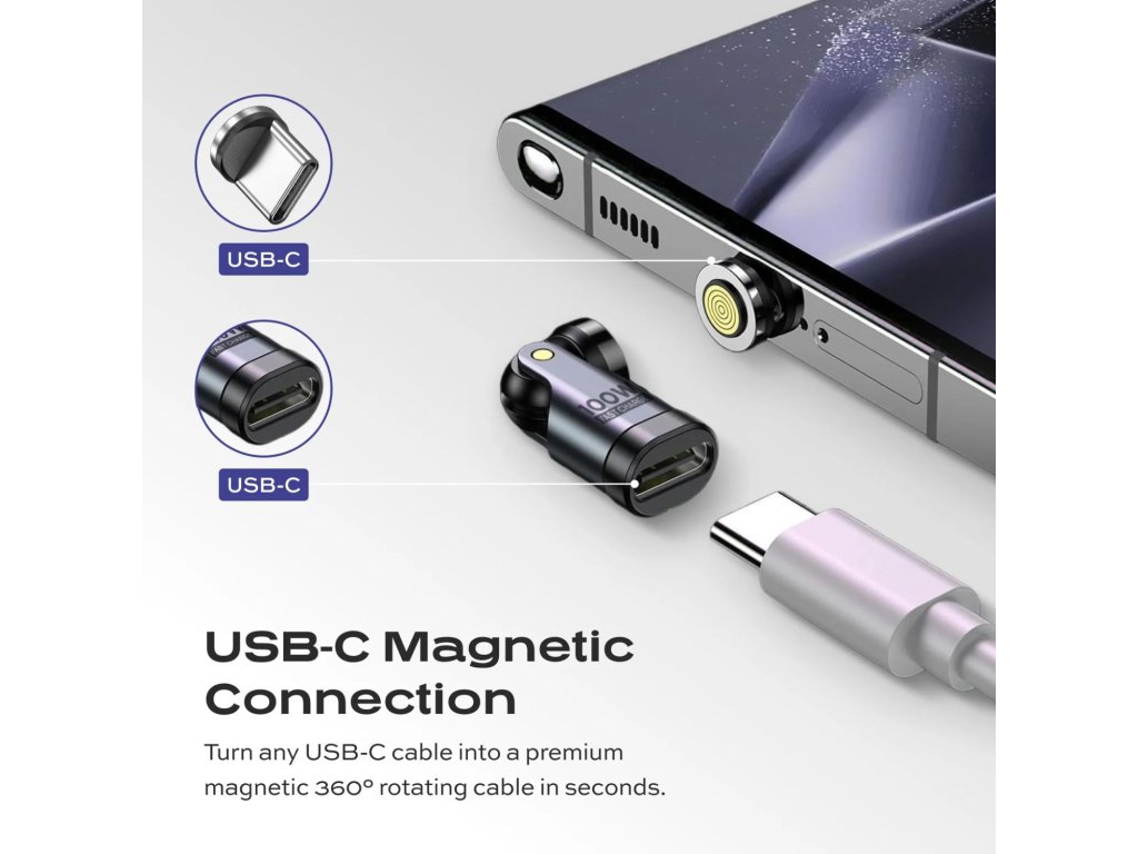 Univerzální kompatibilita: Adaptéry pracují s jakýmkoliv USB-C kabelem, v balení navíc 2 magnetické USB-C konektory.