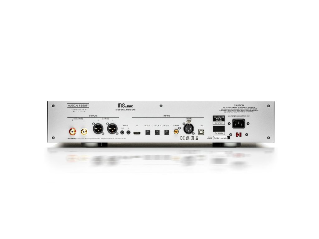 M8x DAC není jen DAC převodník – je také vybaven extrémně výkonným plně symetrickým sluchátkovým zesilovačem, který si poradí i s těmi nejnáročnějšími sluchátky. Ať už posloucháte na reprosoustavách nebo na sluchátkách, vždy zažijete charakteristický zvuk Musical Fidelity: jemný a zároveň silný, jasný a přirozeně muzikální.