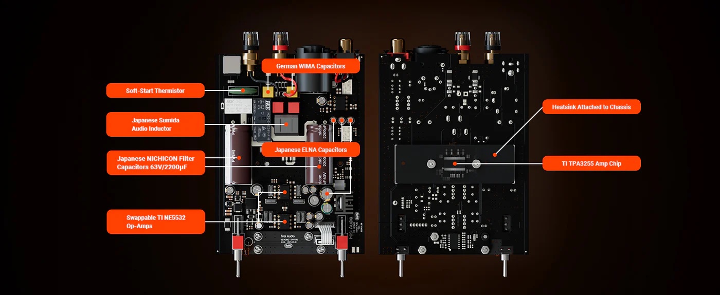 Možnost výměny DIP8 op-ampů pro úpravu zvukového charakteru (například Sparkos, MUSES, OPA, Burson)