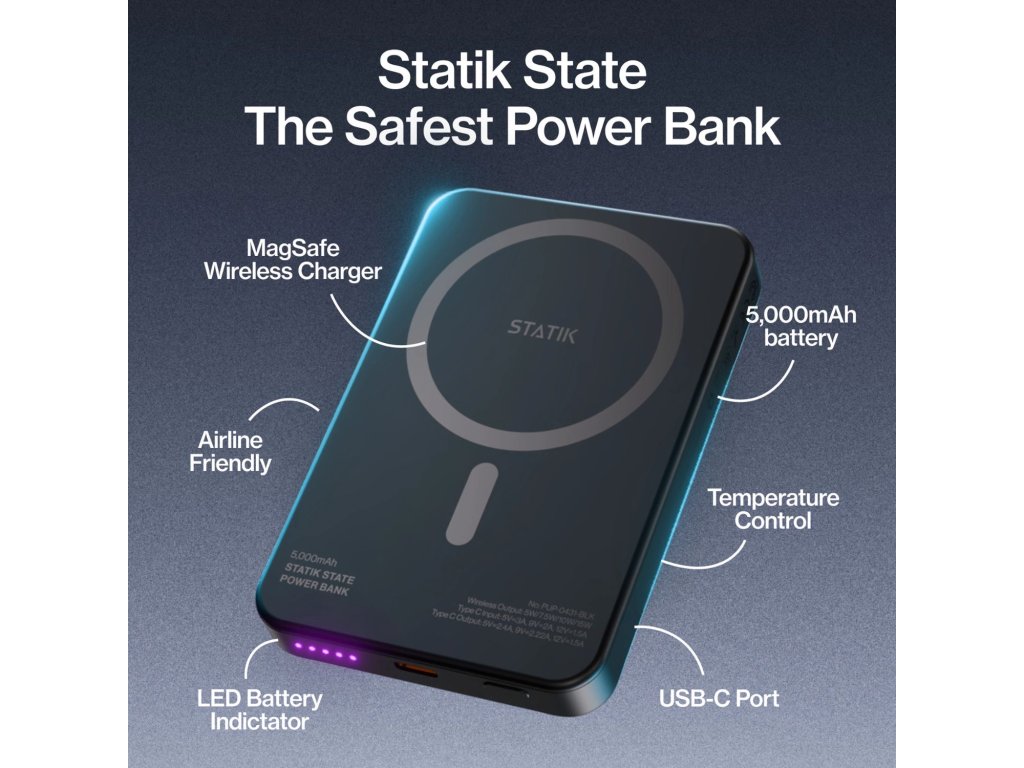 Zapomeňte na obyčejné powerbanky. Statik® State přináší novou generaci přenosného nabíjení, která kombinuje špičkovou bezpečnostní technologii, delší životnost a vysoký výkon v elegantním, odolném těle.