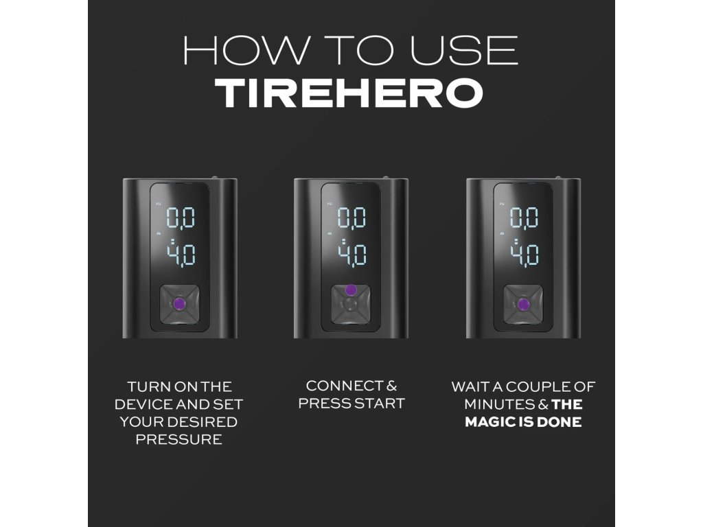 Zažijte svobodu a klid s TireHero™ Wireless Air Pump — kompaktní, přenosná a vždy připravená vám pomoci, ať už jste kdekoli. Ideální pro auta, kola, skútry, motorky, míče a další – vyloučí návštěvu benzínové pumpy, zdlouhavé vyhledávání zásuvek nebo ztrátu času.
