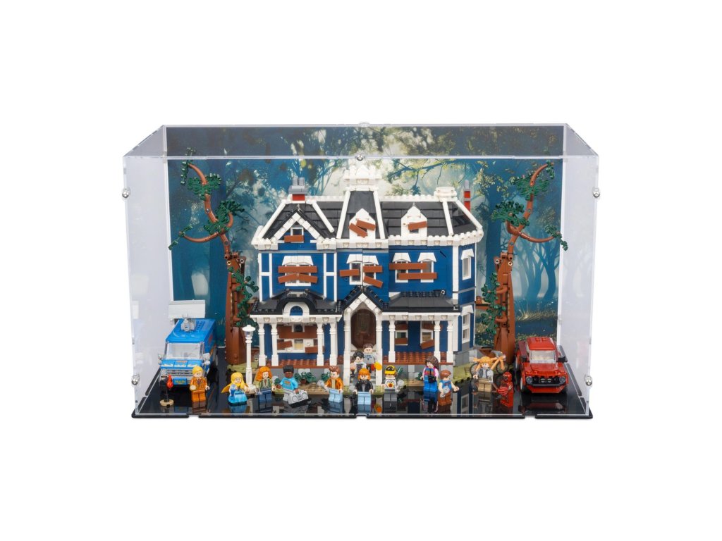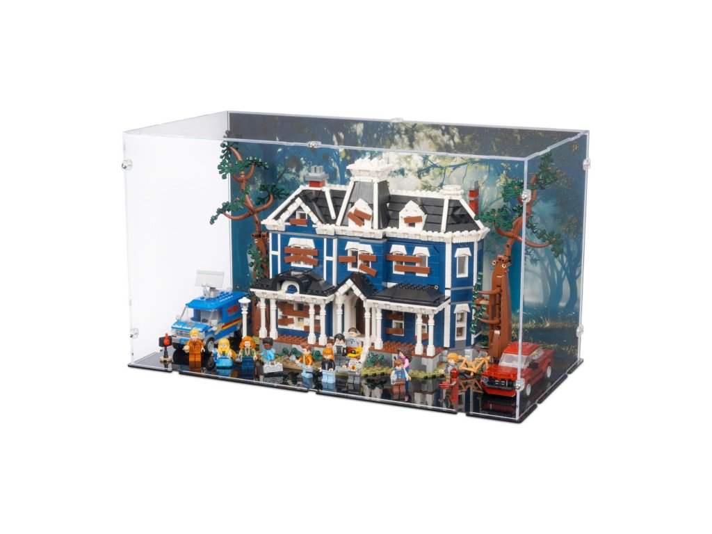 Prémiová akrylová vitrína s exkluzivním tištěným pozadím je navržena pro vystavení stavebnice LEGO® Netflix Stranger Things – Creel House (11370) v zavřené poloze. Chrání model před prachem a zároveň vytváří působivou scénu inspirovanou seriálem Stranger Things, která dodá celé expozici hloubku a temnou atmosféru.
