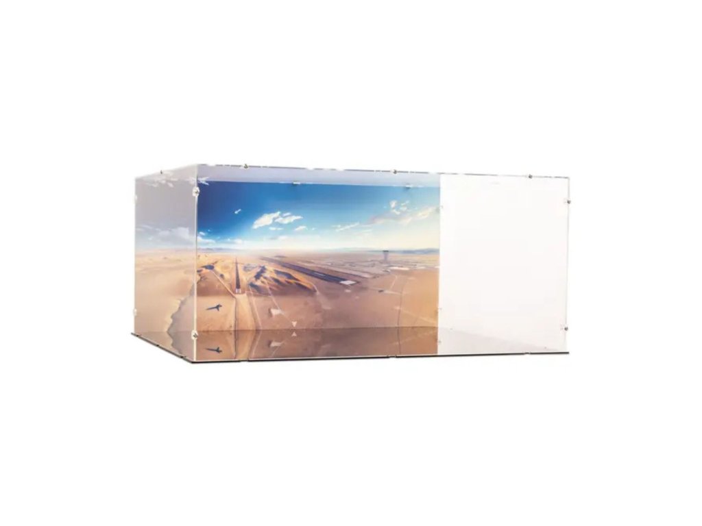 Zadní stěnu vitríny zdobí detailní vinylová grafika s pohledem na pouštní letiště – ideální kulisa pro ikonický letoun převážející raketoplán. Vinyl je na stěně aplikován již z výroby, takže není potřeba nic lepit.