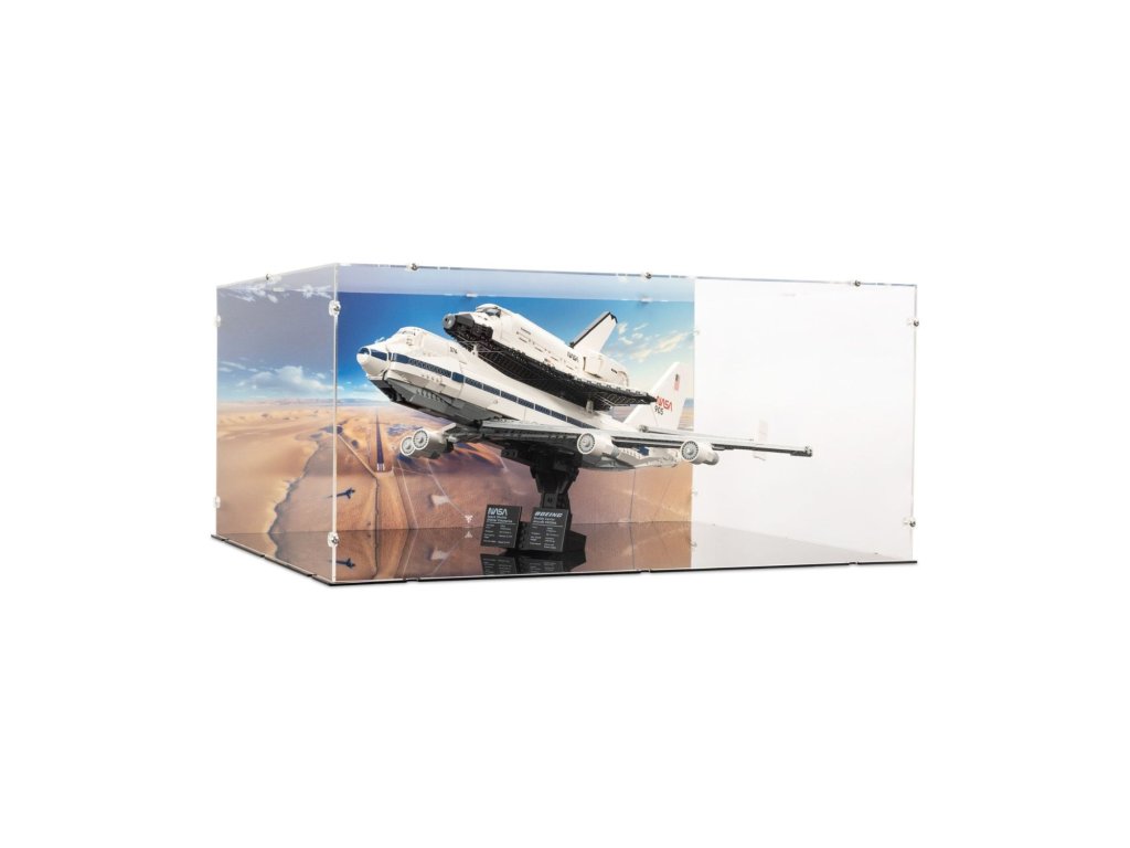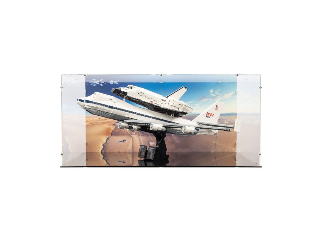Vitrína na LEGO® NASA Shuttle Carrier Aircraft (10360) s leteckým pozadím