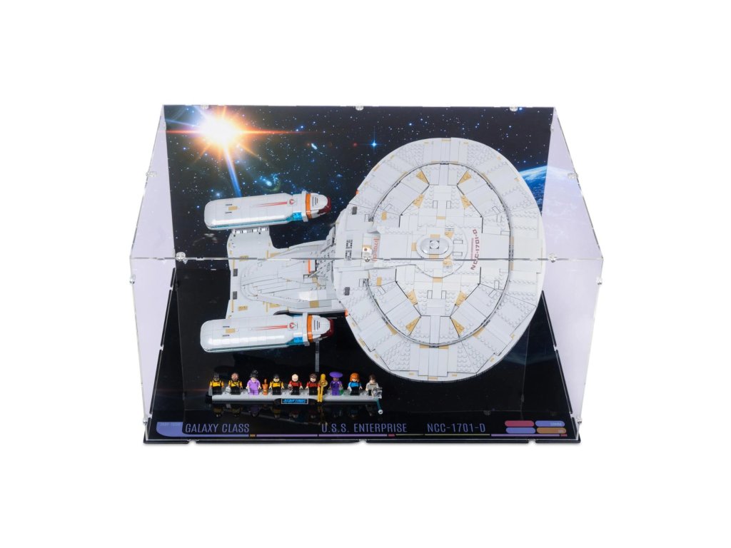 Základní varianta nabízí čistý, minimalistický vzhled, který nechá vyniknout samotný model. Pro náročnější sběratele je k dispozici verze s potištěným galaktickým pozadím a základnou, která vytvoří působivou scénu inspirovanou světem Star Treku. Box je kompatibilní s originálním LEGO stojanem a lze jej doplnit o volitelné stojany pro Enterprise i Shuttlepod.