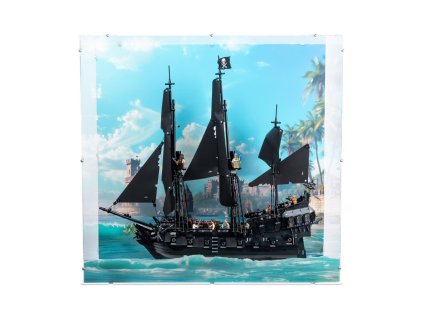 Elegantní vitrína s potiskem pro LEGO® Pirátská loď kapitána Jacka Sparrowa (10365) chrání model...