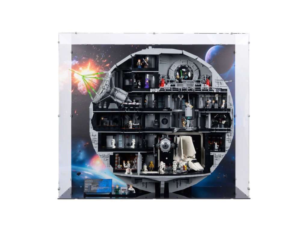 Dodejte svému sbírkovému pokoji imperiální atmosféru s touto velkoformátovou akrylovou vitrínou s potiskem, navrženou na míru legendární stavebnici LEGO® Star Wars UCS Death Star (75419). Je ideální pro vystavení této plně funkční bitevní stanice a zároveň ji chrání před prachem i všetečnými povstalci.
