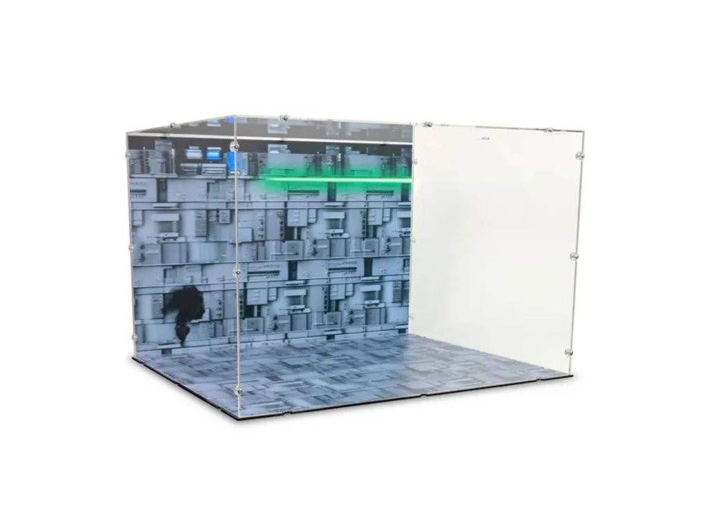 Vitrína je k dispozici i s jedinečným potiskem ikonické scény z útoku na Hvězdu smrti. Vinylové pozadí a podlaha s realistickým motivem jsou předem profesionálně aplikovány, takže si můžete užít výsledek bez složité instalace.