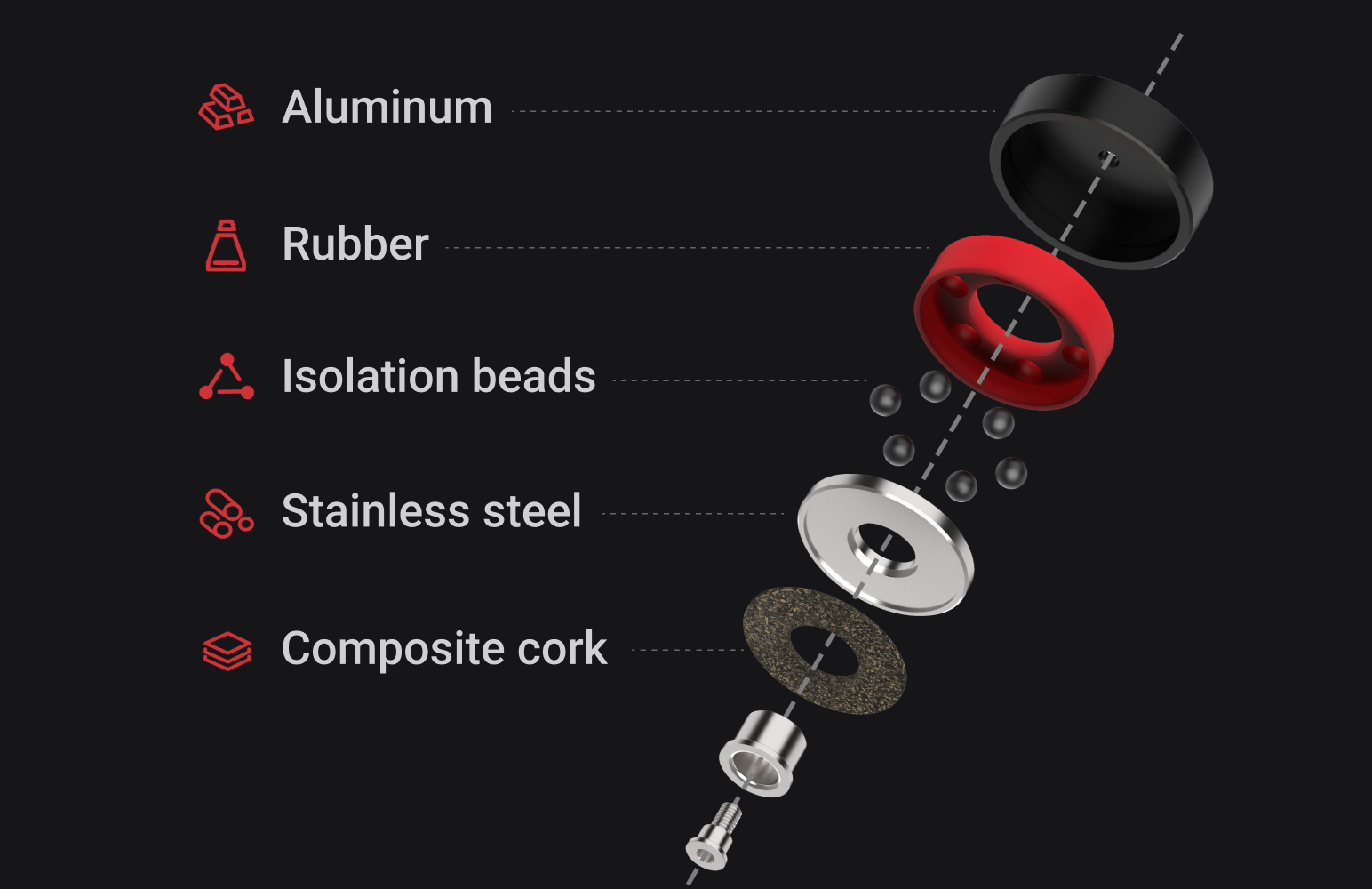 NA-1 je vybaven izolačními tlumiči MA-DAMPER PRO, které byly vyvinuty ve spolupráci společností Matrix Audio a Audio Bastion. Jsou konstruovány z pěti materiálů – hliníku, nerezové oceli, pryže, izolačních kuliček a kompozitního korku – které společně vytvářejí vícevrstvý systém tlumení a kontroly vibrací. Ten účinně absorbuje a potlačuje vnější mechanické rušení.