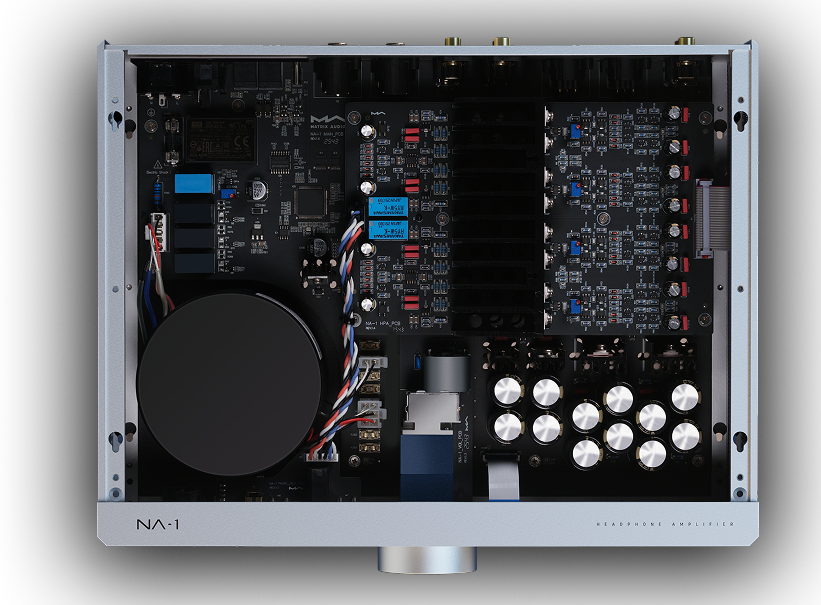 NA-1 využívá vertikálně vrstvenou architekturu obvodů. Obvody předzesilovače spolu s lineárním napájením a filtračními kondenzátory jsou umístěny na spodní desce plošných spojů, zatímco zesilovací stupeň pro sluchátka se nachází na horní desce. Fyzickým oddělením napěťového a proudového zesilovacího stupně se účinně snižuje vzájemné rušení a optimalizuje se rozložení tepla. Výsledkem je vyšší provozní stabilita a efektivnější odvod tepla – zařízení tak může pracovat s naprostou jistotou během každého okamžiku nerušeného poslechu.